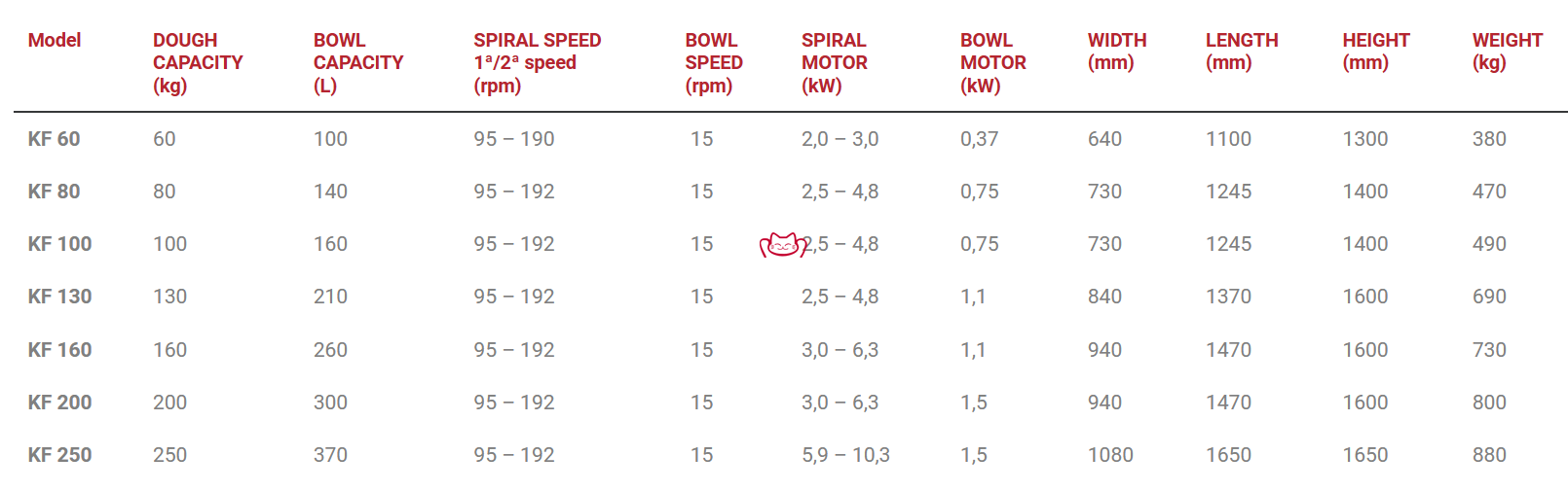 特征: 采用双速度及时间制分别操控搅头及盛锅运转,同时依附在手动控制及电子控制双控制功能下,配合特大功率马达, 耐用钢珠轴承结构及精确齿轮带动,使此系列搓粉机能提供高效能操作, 钢底烤漆机身, 散热马达, 不锈钢盛锅及搅头, 安全纲及紧急制(容量以面團重量計算), 适合各类面包店使用。