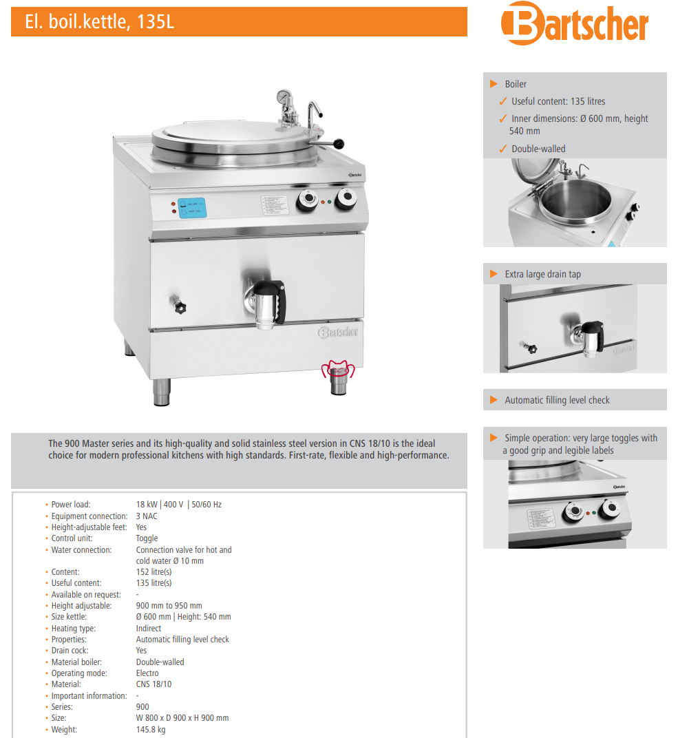 特征:900 Master 系列及其优质坚固的 CNS 18/10 不锈钢版本是高标准现代专业厨房的理想选择。一流、灵活、高性能。