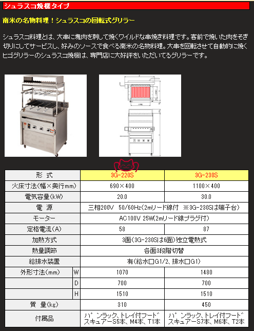 [品牌] HIGO-GRILLER [型号] 3G-220S [单位] 台 [参考交货期] 10-12周