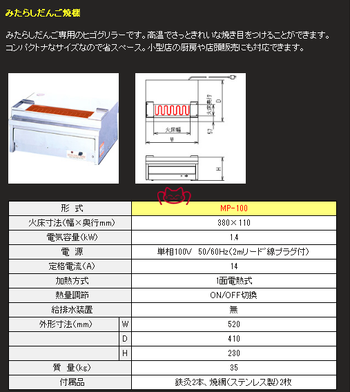 [品牌] HIGO-GRILLER [型号] MP-100 [单位] 台 [参考交货期] 8-10周