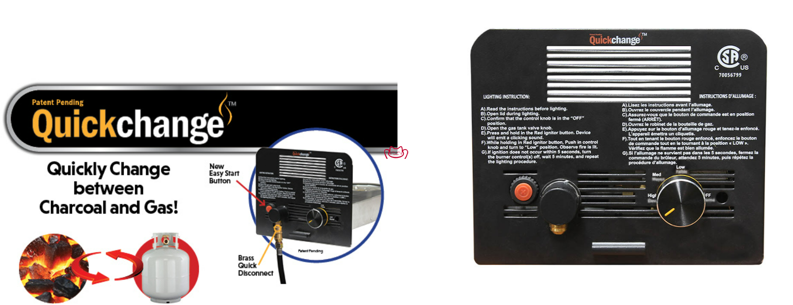Quickchange Gas Insert 以其独特的能力改变了烧烤历史的进程,可以在木炭和燃气之间转换我们的烤架,然后再转换回来,占地面积小。在木炭和燃气之间快速切换;26,500 BTU 红外线不锈钢燃烧器;轻松滑入以更换用于燃气烧烤的灰抽屉;在几分钟内切换燃料.