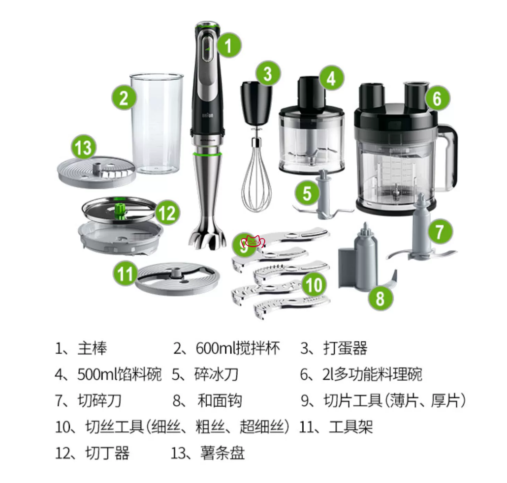 德国博朗BRAUN MQ9195XLI MultiQuick 9多功能手持搅拌棒