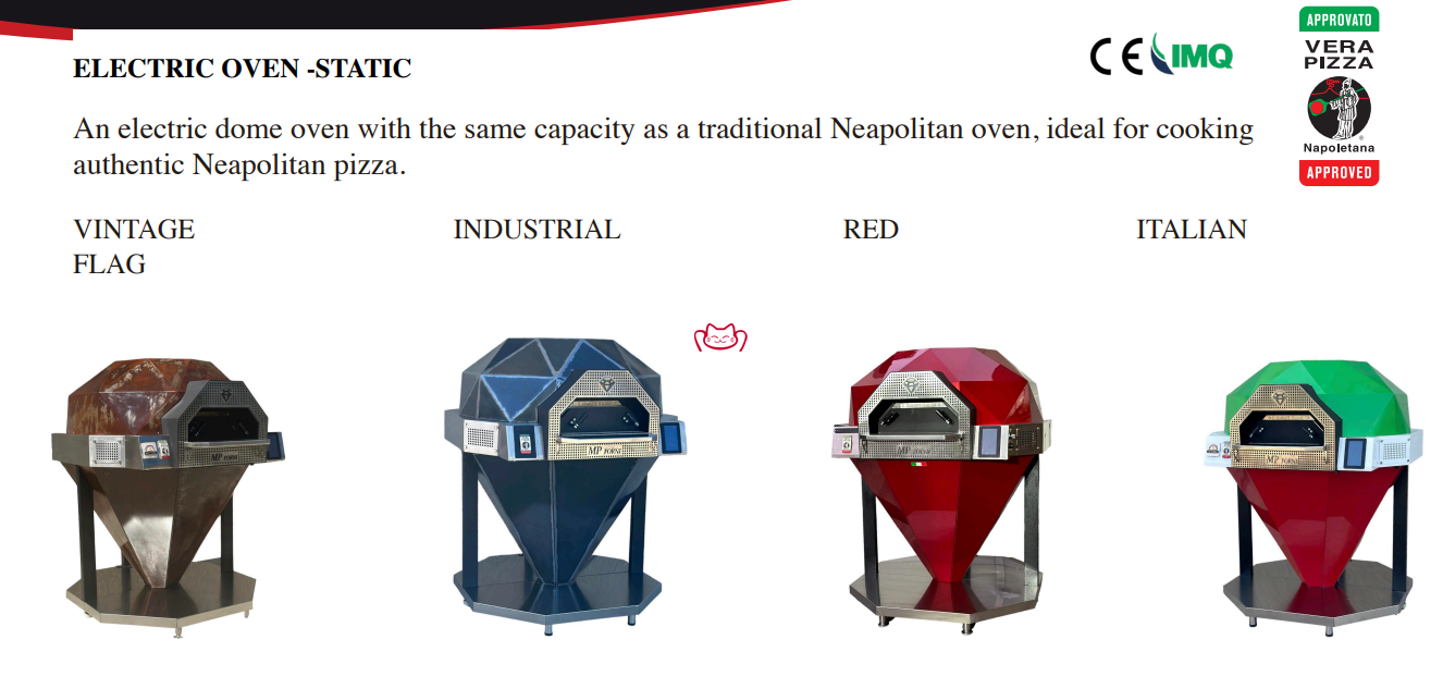 特征:电动圆顶烤箱与传统那不勒斯烤箱具有相同的功能,非常适合烹饪真正的那不勒斯披萨,设计温度高达 540°C。其特殊的形状允许角度定位。经 AVPN Verace Pizza 协会批准和测试。烹饪室完全由耐火材料制成。 16 毫米外露圆顶电阻器允许热量像传统的燃木烤箱一样通过辐射分布,从而均匀分布在整个工作表面上。 烤箱配备 7 英寸 65k 触摸控制面板和多达 100 种食谱的可定制菜单。 下限和上限按百分比分开管理。