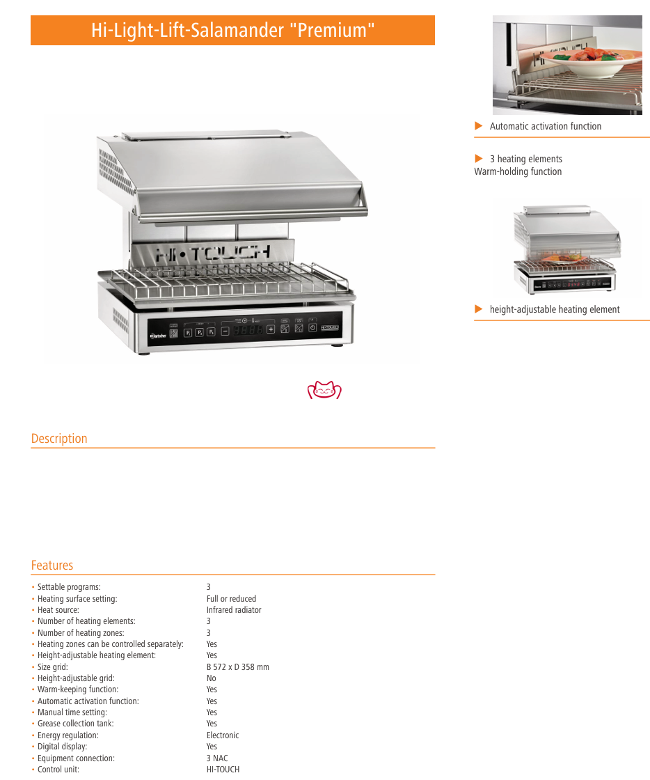 德国BARTSCHER 101547 船舶用高级面火烤炉 品牌:BARTSCHER 型号:101547 规格:585X600X515MM 电量:400V 4.5KW 50-60HZ 程序设置:3 独立加热区域:3 烹饪面:572X358MM 备注:包括1 个格栅和1 个用于墙壁固定的支架