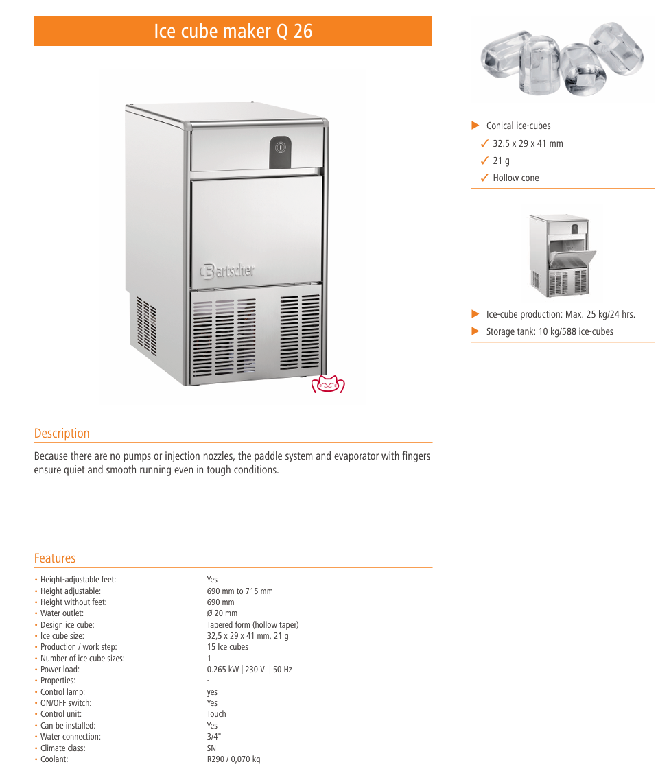 德国BARTSCHER 104304 25公斤高级冰钻制冰机