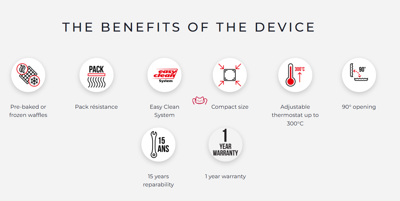 -该专业华夫饼机配备 Easy Clean 系统,可即时拆卸烤盘并放入洗碗机清洗;同时配有 Heating Element Pack 加热组件,确保铸铁烤盘上的热量分布均匀。