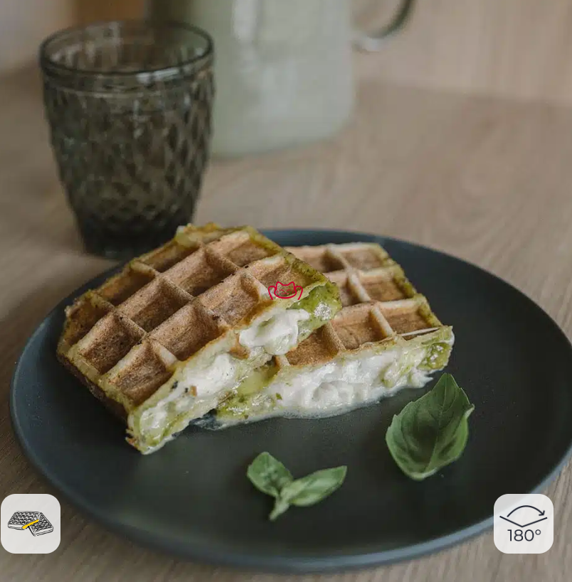 -水果华夫饼在甜味版本中填充水果或巧克力,在咸味版本中填充奶酪。得益于摇摆开合设计,这款 180° 开合华夫饼机非常适合制作新鲜华夫饼。