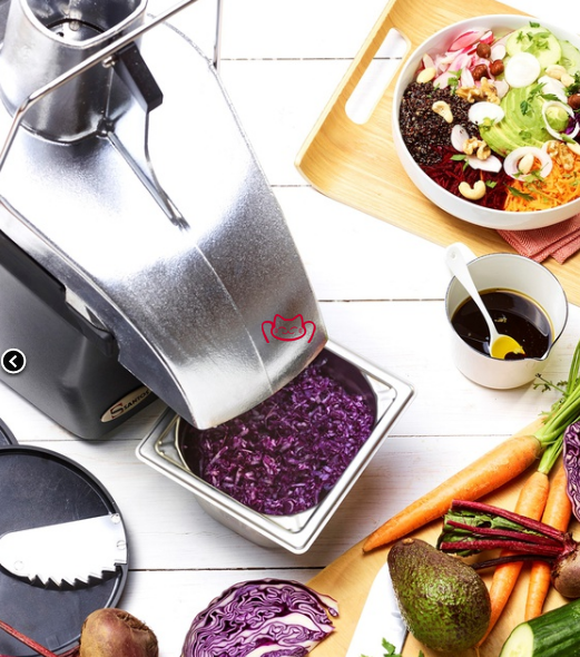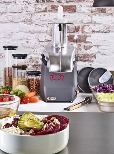法国山度士SANTOS 48# 切菜机 品牌:SANTOS 型号:48# 规格:250x420x580mm 电量:220v 390w 转速:1000PRM 进料口:75mm 特征:标配T3 切片刀盘,R3擦丝刀盘,E8切条刀盘各一个。