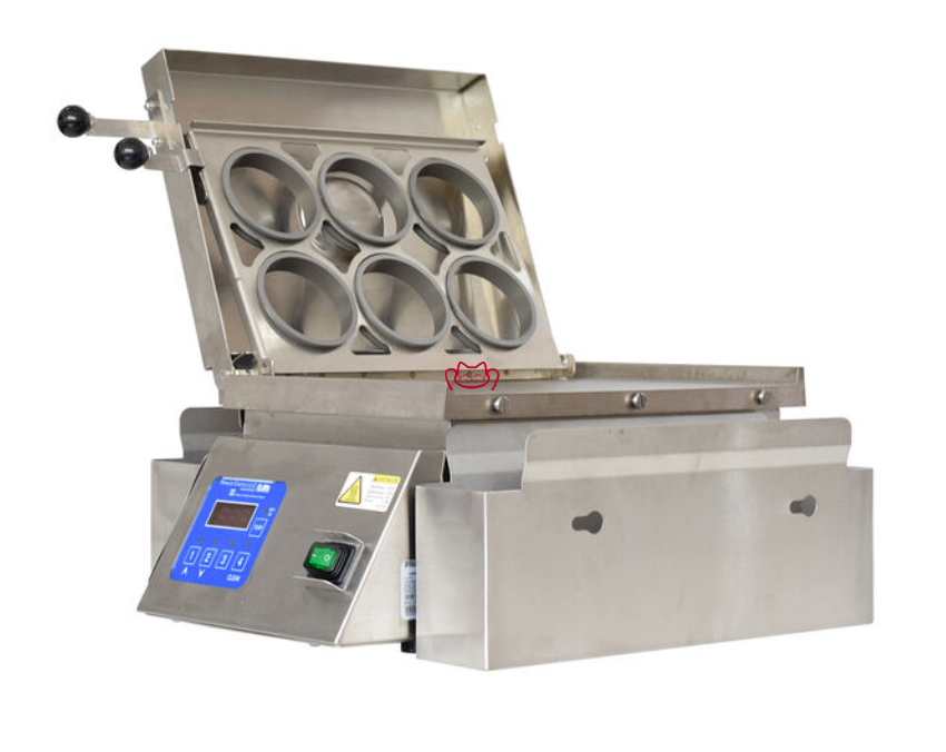 厂家数据:单次6枚,标准循环 ≈ 2分30秒 → 理论产能 ≈144 枚/小时(计算基于 60 ÷ 2.5 × 6)。(实际产能会受取放效率、预热以及人员配合影响)。
