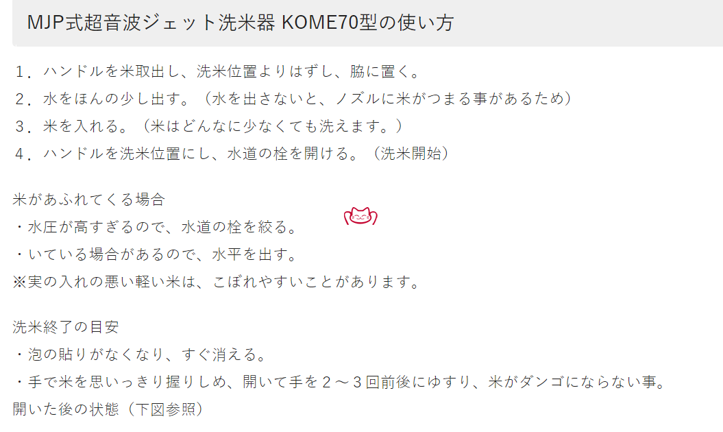 ●通过超声波完成大米碾磨:标准价格的大米与品牌大米(旧米或新米)一样美味。将任何旧米磨碎到每种谷物都完美的程度。保质期长,即使放在罐子里也没有气味。由于泡沫的缓冲作用,几乎没有破裂的米饭。无需任何设备工作,只需直接连接到水管即可。