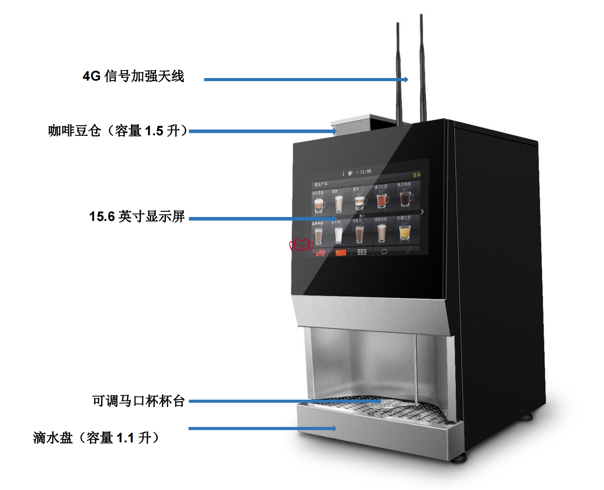 - 单品速溶饮料时间 20 秒 (120ml),支持连续出杯>60 杯/小时