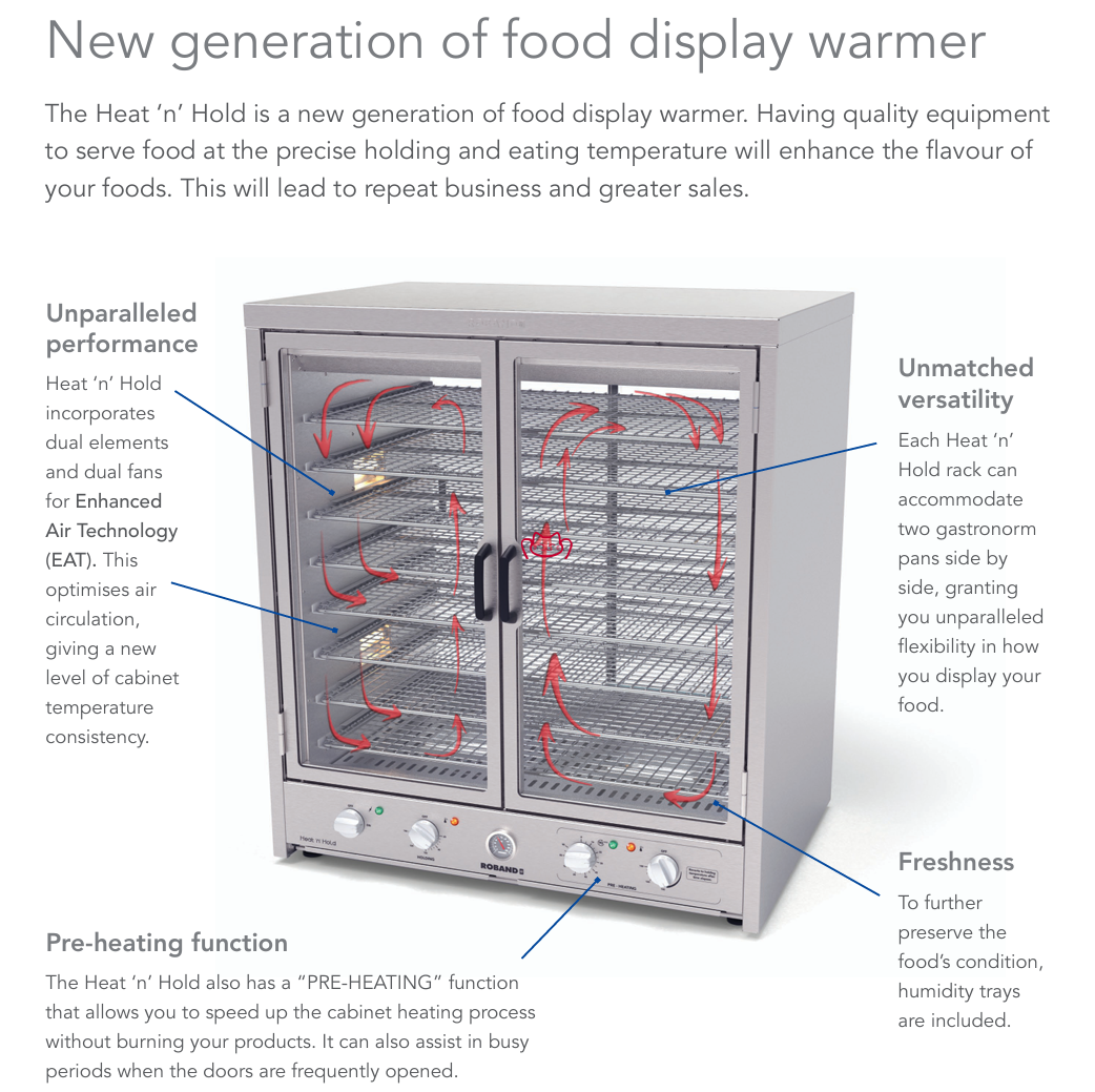 Heat ‘n’ Hold 是新一代食品展示保温设备,旨在保持柜内食物在理想温度,使产品始终外观诱人、口感可口。