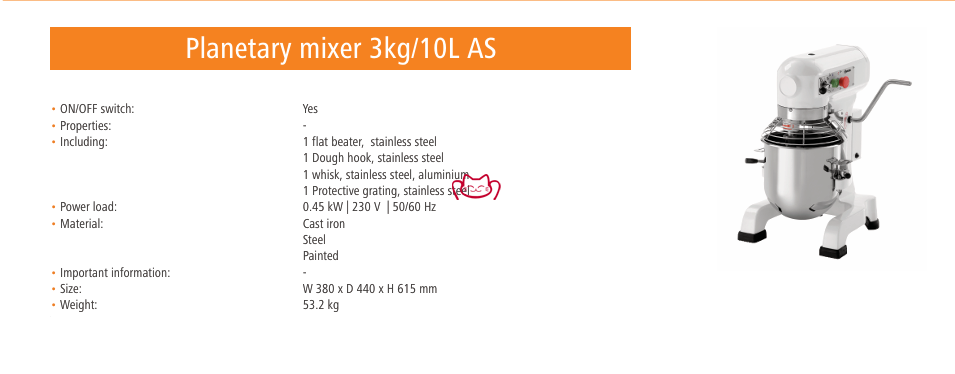 官方标称:每次搅拌产出可达 3 kg 面团 / 10 L 碗,匹配小型商业节拍(开店高峰可循环运行),产能数据可校验,客户一眼能算清投入产出。