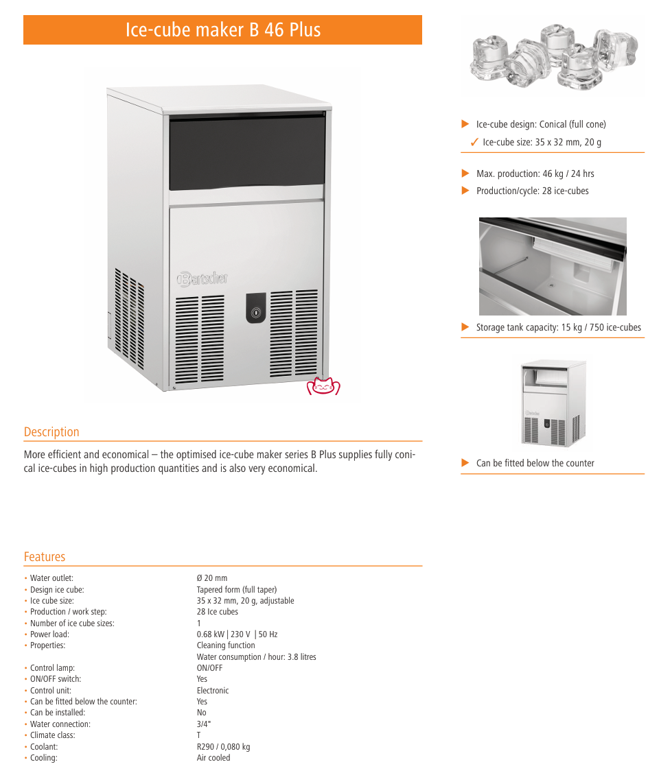 特征:更高效、更经济——优化升级的 B Plus 系列制冰机可高产量生产标准实心锥形冰块,同时兼具出色的节能性能。