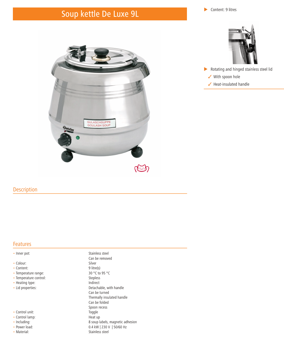 德国BARTSCHER 100058 9升船舶用保温汤炉