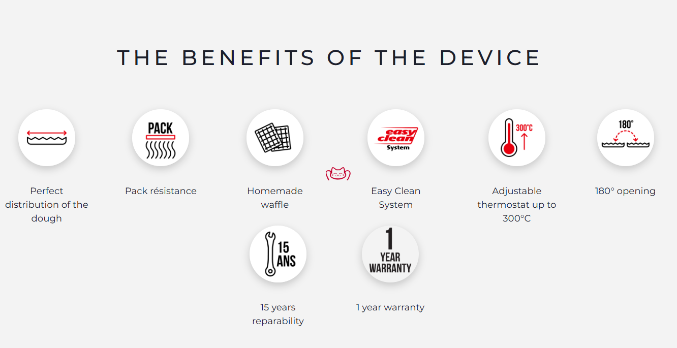 -这款专业华夫饼机配备 Easy Clean 系统,可快速拆卸华夫饼铁板并放入洗碗机清洗,同时配有加热元件套件,实现铸铁铁板的均匀受热。