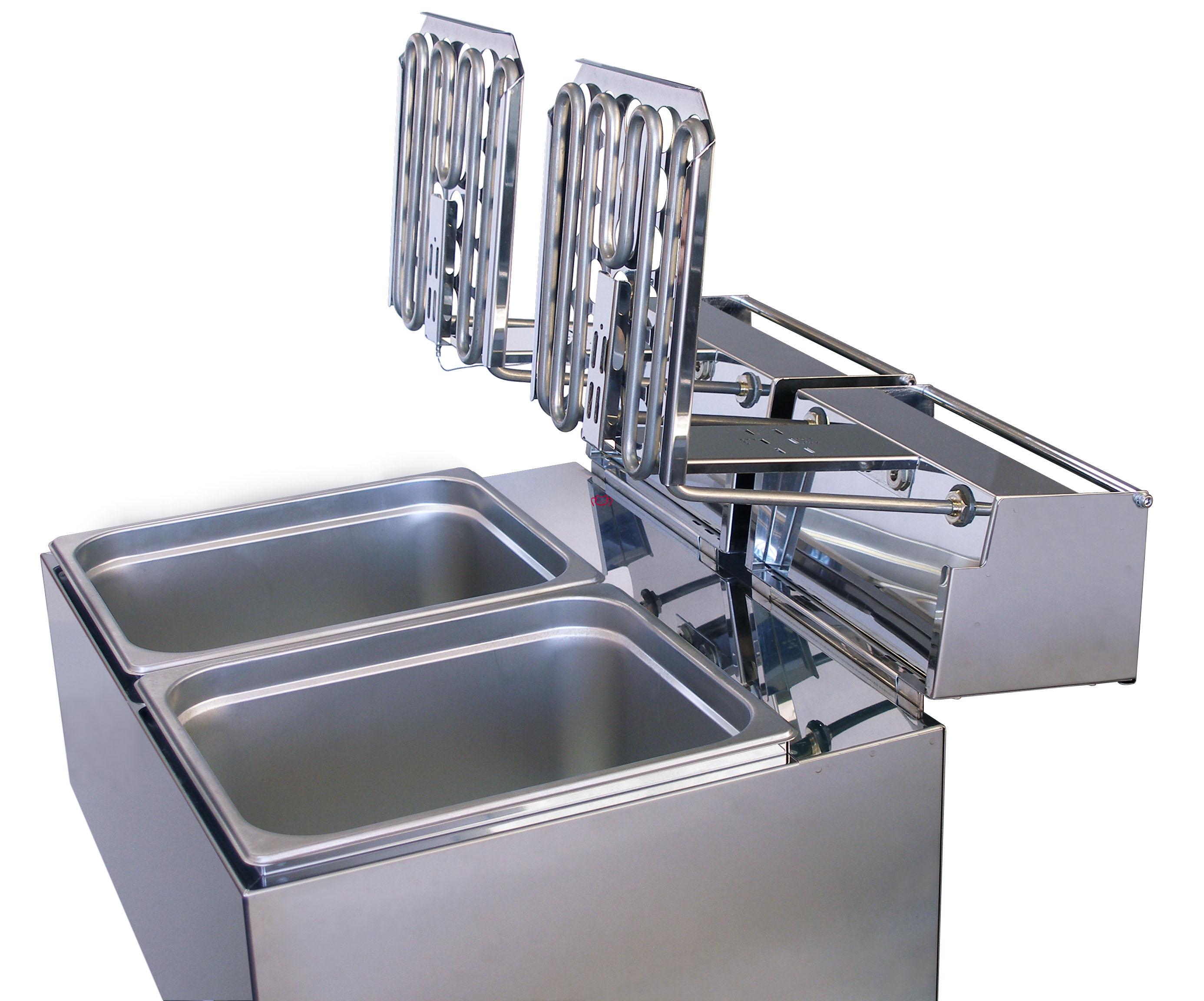 答:F25 设计有可轻松拆卸油槽和上翻式加热元件,日常清洁只需将油槽抽出、过滤残渣并擦拭,周检时再拆开加热件检查,整体工时低于传统固定式炸炉。